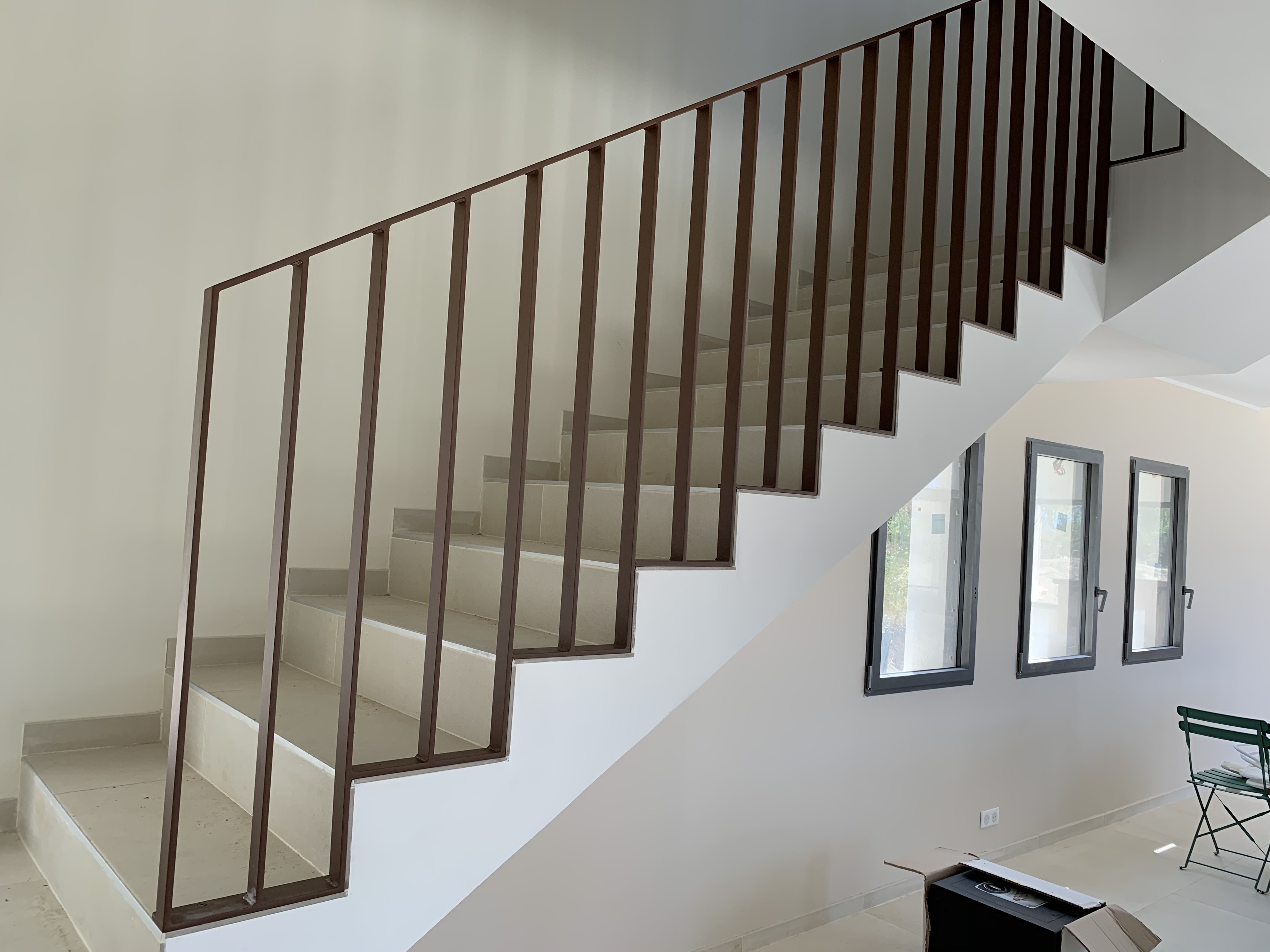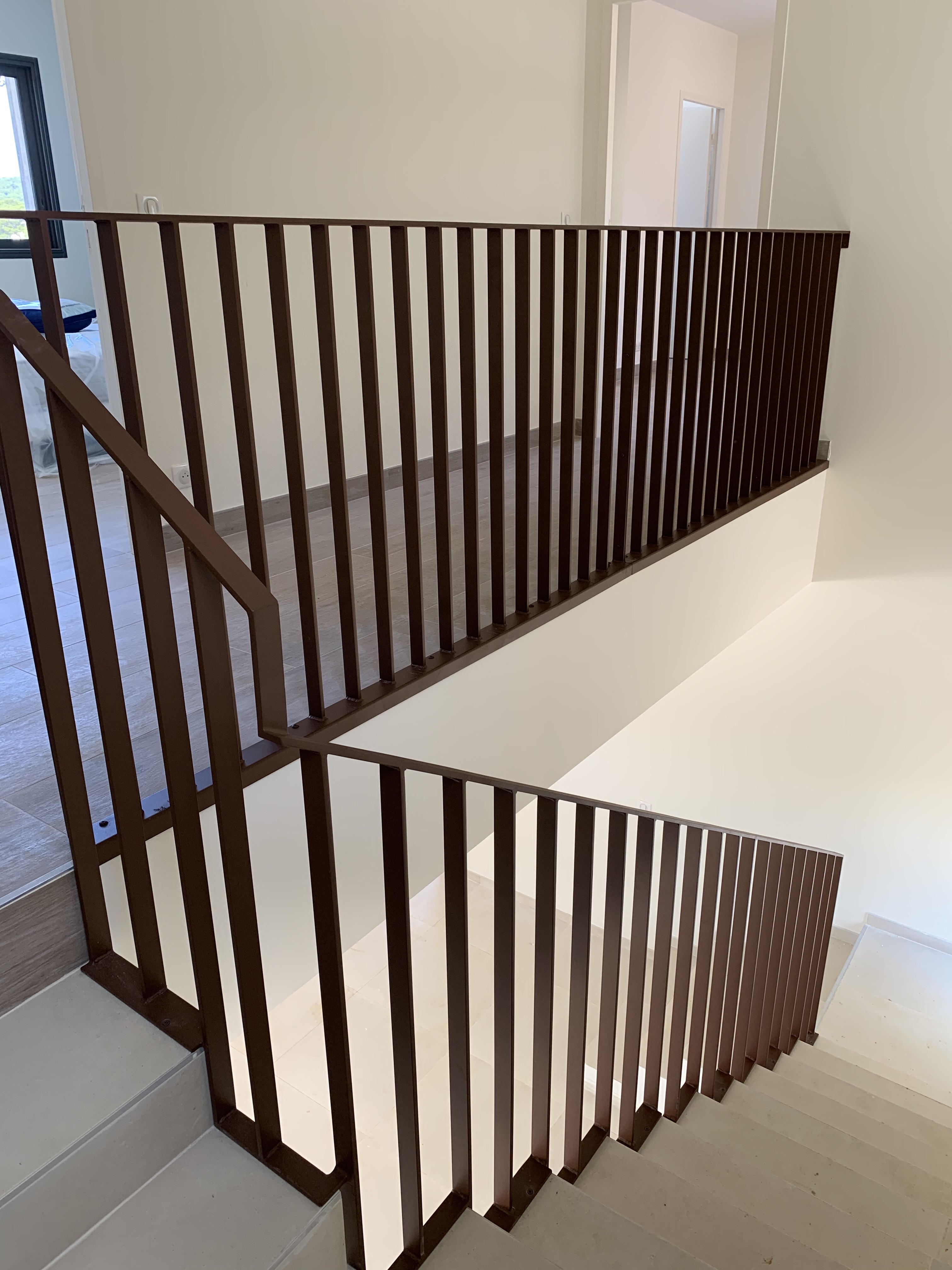 Garde corps thermo-laqué (couleur rouille), avec lisse basse en crémaillère